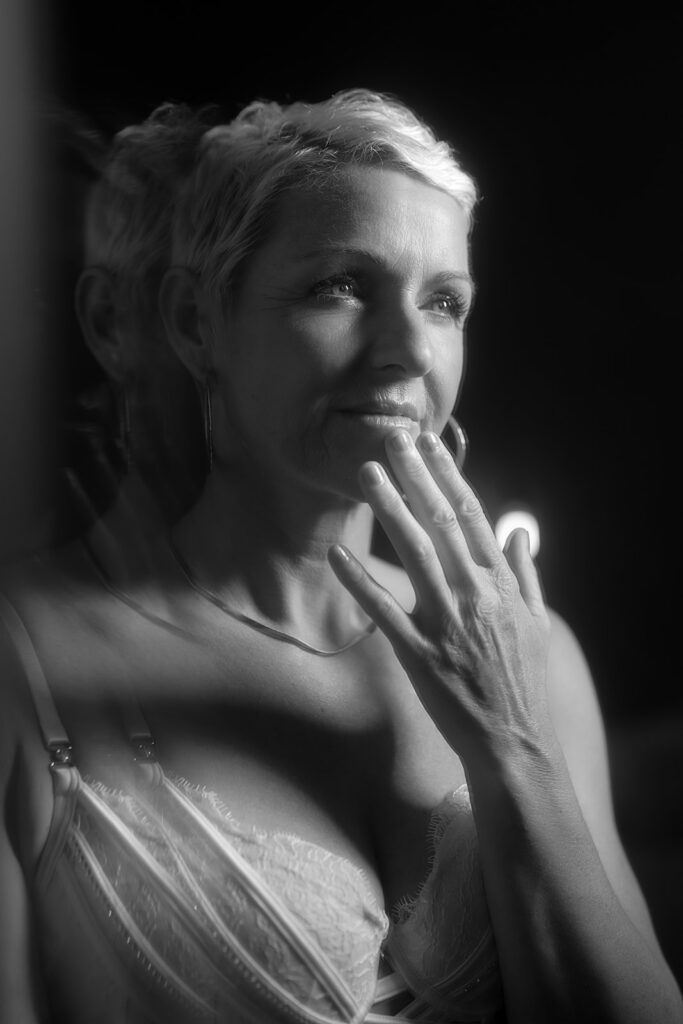 Shauna still finds it hard to look at her own photos sometimes. She’s working on it. That’s honest, and it matters. A boudoir session isn’t a cure for a lifetime of feeling wrong in your body. But she walked in shaking and walked out proud. She said so herself: