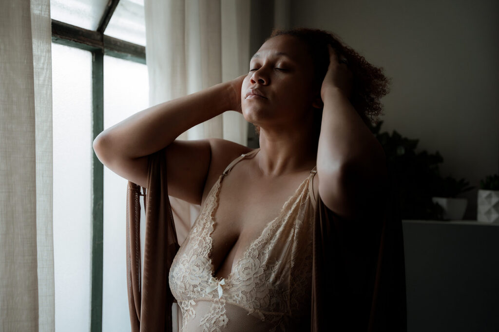 If you’re thinking about a boudoir session specifically because of complicated feelings about your body, you’re not doing it for the wrong reason. That’s actually one of the better reasons.